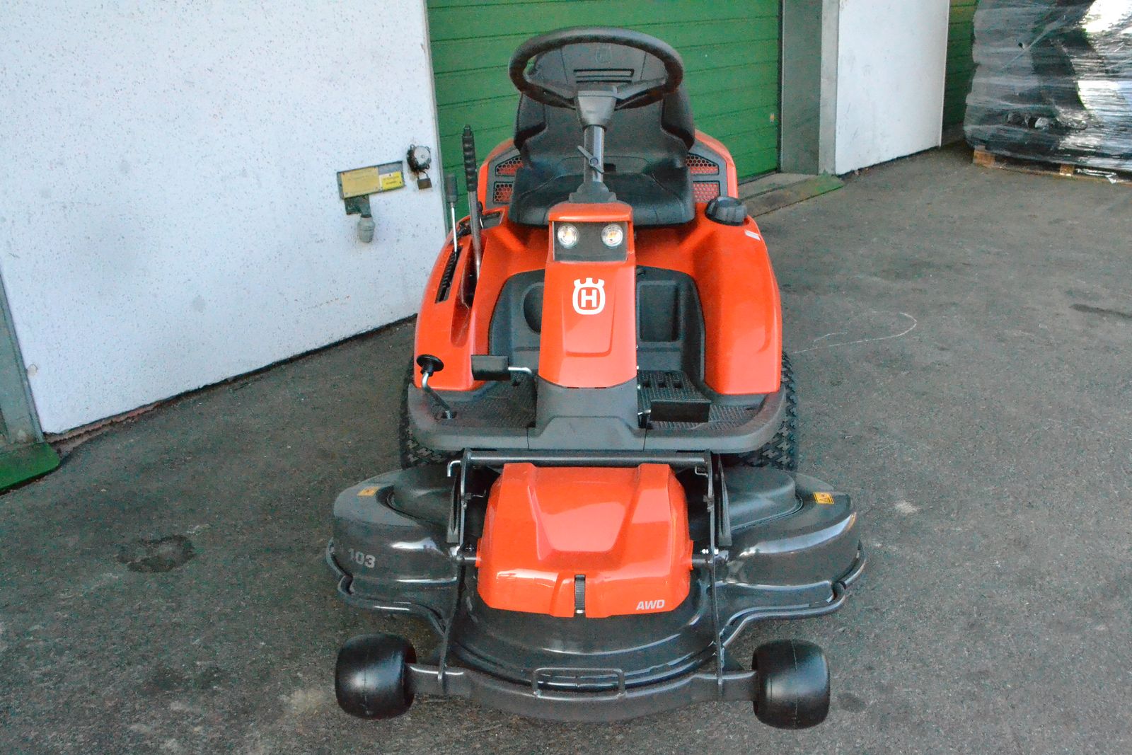 Husqvarna Rider R 216T AWD Alllrad - Motor: HV 586AE mit 16 PS - Hubraum 586 cm³ - 2 Zylinder - Motorkühlung - Allradantrieb - Hydrostat - verstellbares Lenkrad - LED-Scheinwerfer - Betriebsstundenzähler inkl. Combi-Mähdeck mit 103 SchnittbreiteFangbox (Liter): 0